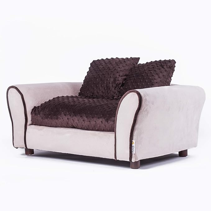 Give your pet the gift of luxury and comfort with the Keet Westerhill Dog Sofa Bed. Designed in California and made in Tijuana, Mexico, this premium couch for dog is thoughtfully crafted to provide long-lasting comfort, durability, and style. Its Minky upholstery offers a sophisticated look while ensuring easy maintenance. This pet sofa has a removable, machine washable cushion cover so your dog's favorite spot stays fresh and cozy. We’ve incorporated a heavy-duty zipper with locking sliders to keep playful dogs from tampering with the cushion cover. Beneath the upholstery lies a waterproof layer to protect the filling, ensuring the pet sofa bed couch remains in great shape even during accidents or spills. Inside, the special fill formula combines poly-fiber and shredded memory foam, providing your dog with the perfect mix of support and softness. The solid wood frame and legs not only enhance the dog bed sofa durability but also add a touch of elegance to your home. Whether it’s naptime or playtime, your furry friend will love lounging on this beautifully crafted fancy dog bed, and you’ll love how it looks in your living space.
